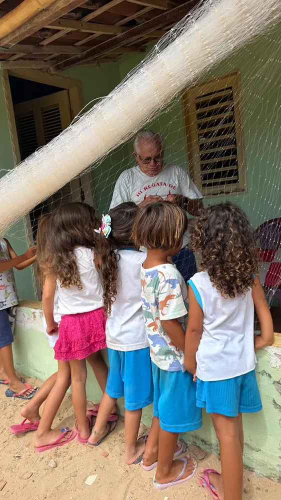 A Escola Crianças de Luz atua há 25 anos na Vila do Estevão, território tradicional pesqueiro no litoral do Ceará, promovendo uma educação viva e comunitária, baseada na pedagogia Waldorf. Há alguns anos a região tem sofrido com o alto interesse da especulação imobiliária e da implantação de parques eólicos que desconsideram os modos de vida locais. Esses processos têm gerado deslocamentos, transformações forçadas na paisagem e o apagamento de práticas socioculturais e ambientais ancestrais.